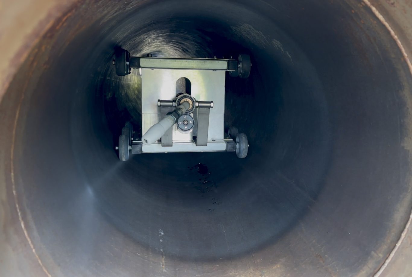 Reinigung und Rostentfernung mit Trockeneis in einem 6 m langen Druckrohr (Ø 500 mm)